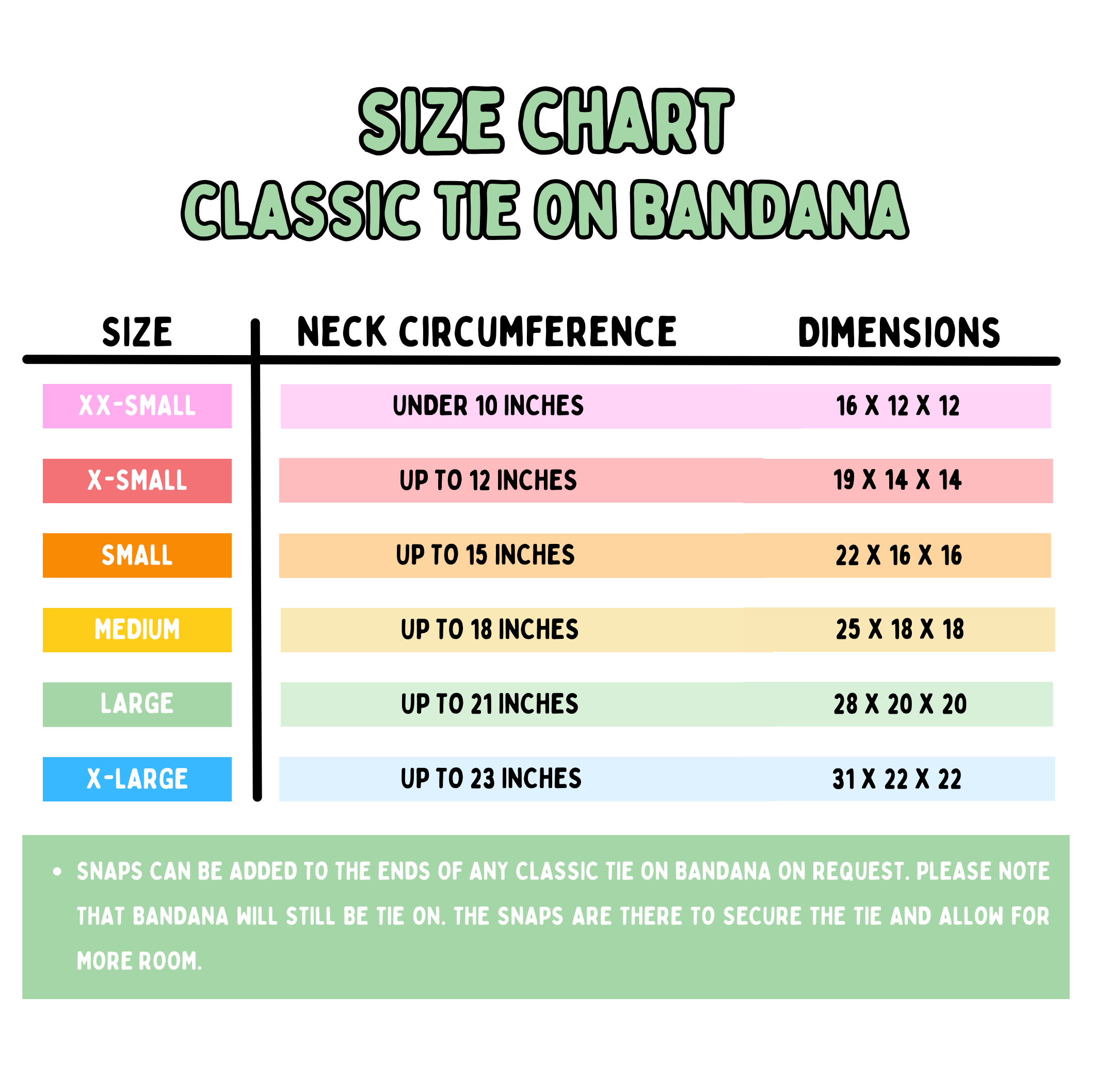 Classic Tie On Style - Our classic bandanas are triangle shaped and easily adjustable. - Roll down the bandana to adjust the height so that it is the perfect fit for your pet. - Preferred by pet owners with pets that are still growing and need a more adjustable fit. - Each bandana comes with a cork "Everything Doggo" label